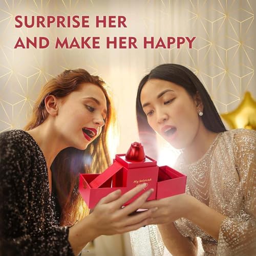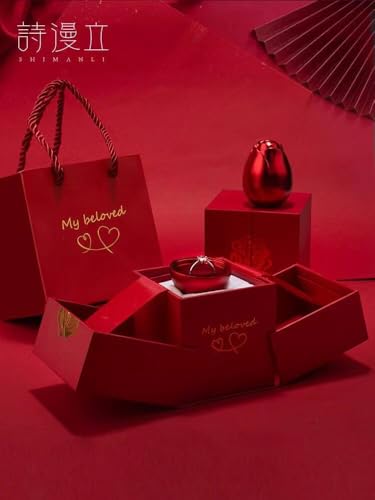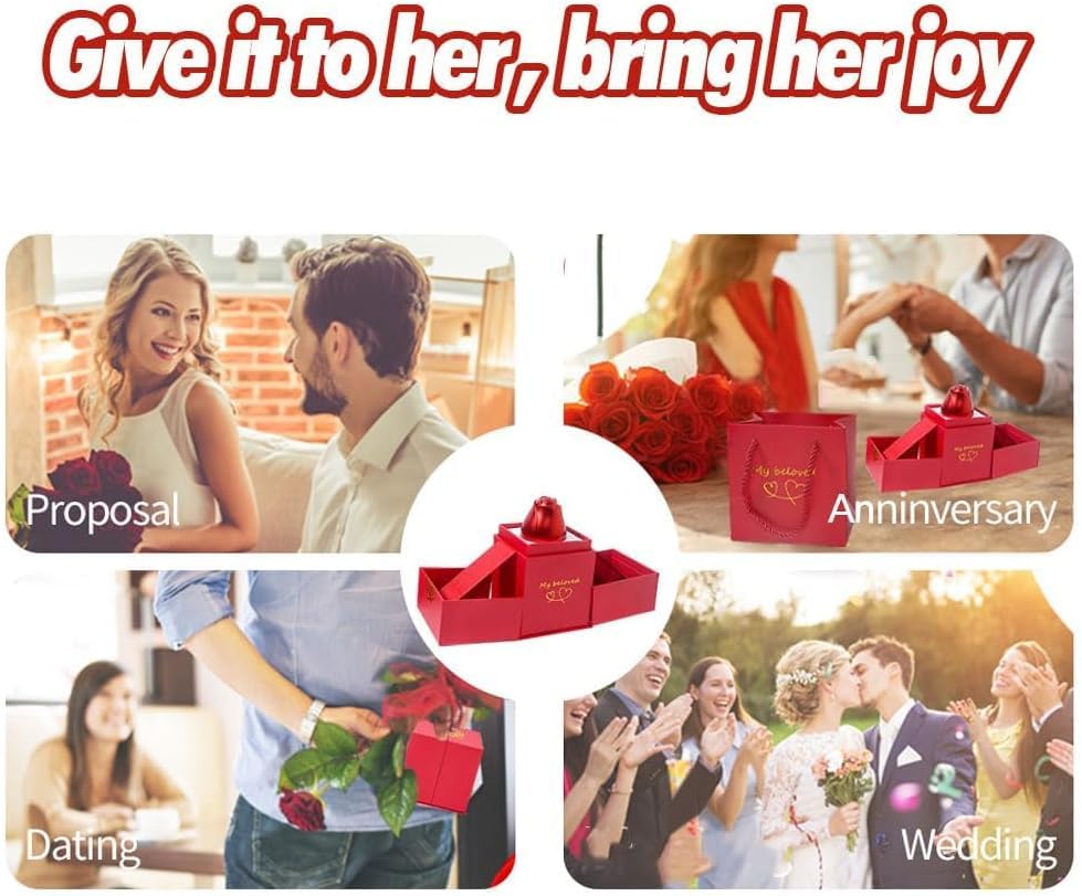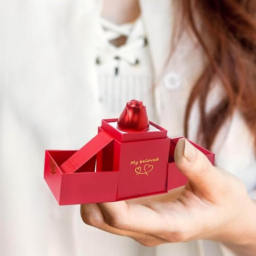 Generic - Creative Flower Rose Ring Box, Lift Rose -Shaped Ring Necklace Jewelry Box Used for Wedding, Valentine's Day, Wedding Anniversary (Red)