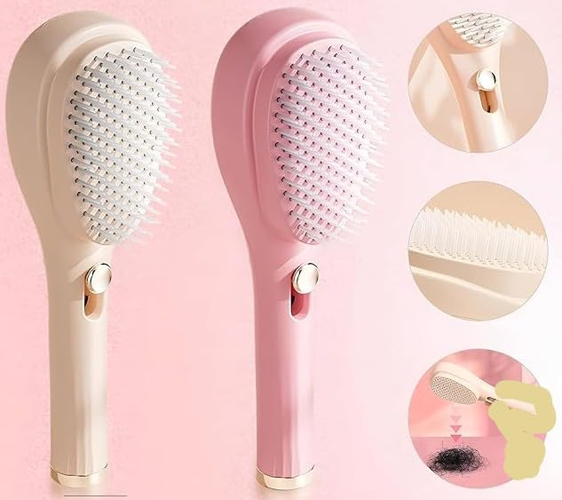 Generic - فرشاة تصفيف الشعر المبتكرة بنظام التنظيف الذاتي، تدليك لتقليل تساقط الشعر، مناسبة للشعر المبلل والجاف متعدد الالوان