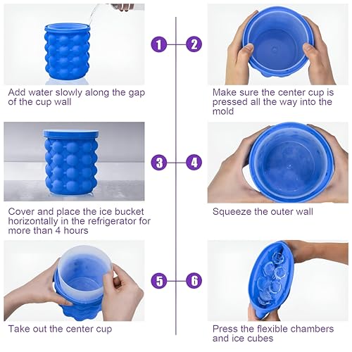 - مصنوع من السيليكون عالي الجودة، دلو صانع مكعبات الثلج آمن للغسل في غسالة الأطباق وسهل التنظيف.