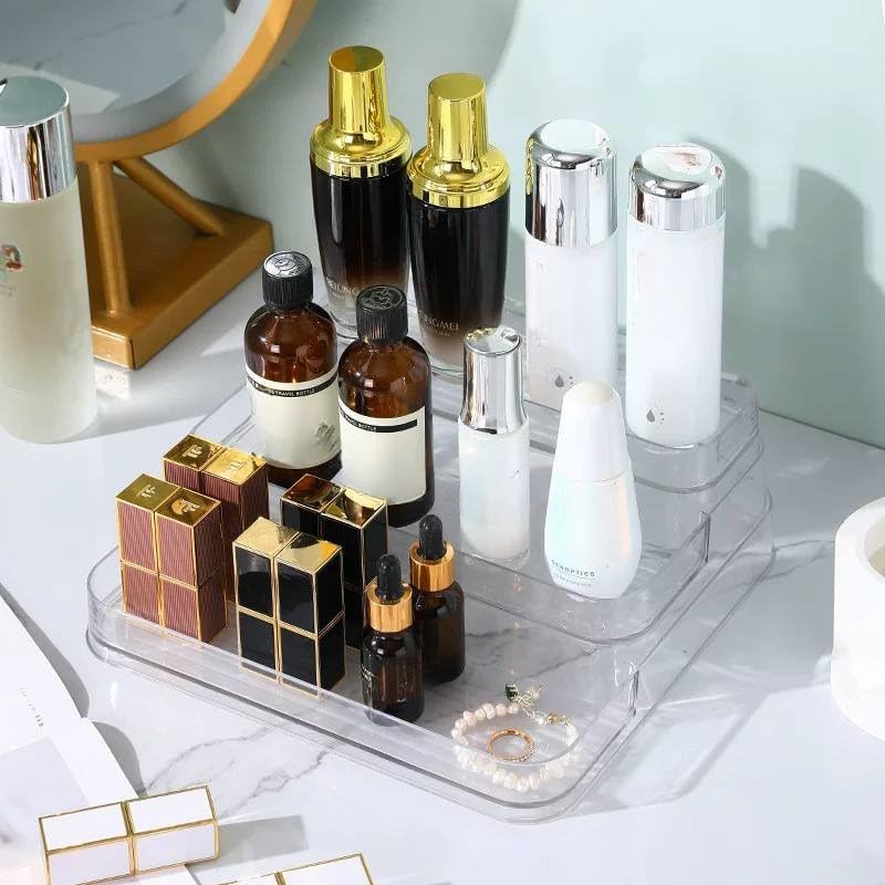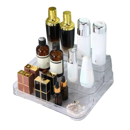 Generic - منظم عرض وتنسيق أكريليك 3 مستويات بتصميم السلم المبتكر، وحدة تنظيم شفافة ومتينة لتنظيم العطور، التوابل، والمقتنيات بلمسة عصرية k