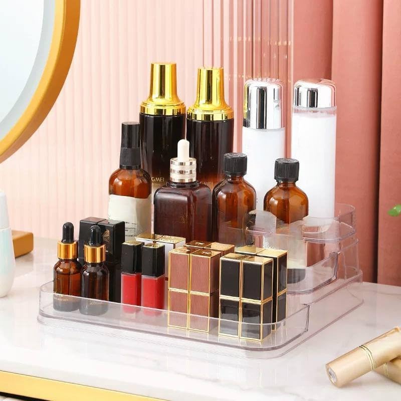 - تصميم عصري يناسب كل مكان: بفضل لونه الشفاف وتصميمه البسيط، يندمج المنظم بسلاسة مع أي ديكور منزلي، سواء استخدمتيه للمكياج، العطور، أو حتى لتنظيم ركن القهوة.