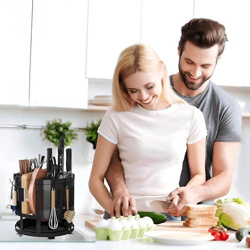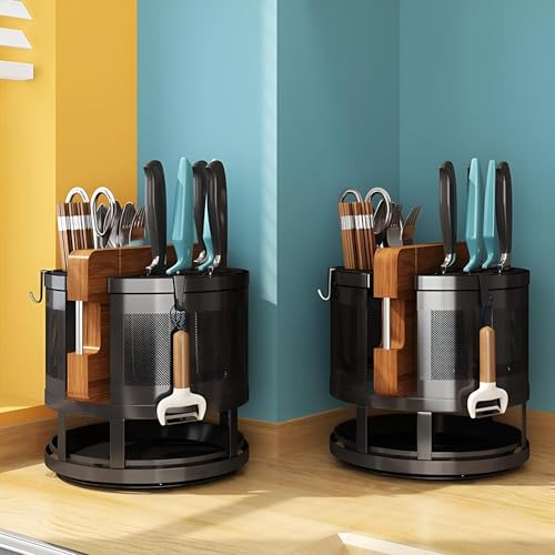 Generic - حامل ملاعق مبتكر - يتميز بتصميم دوار أنيق مزدوج الطبقات، يوفر حامل السكاكين الدائري هذا مساحة تخزين فعالة للسكاكين وأدوات المطبخ، مما يزيد من استغلال المساحة (1 منظم)