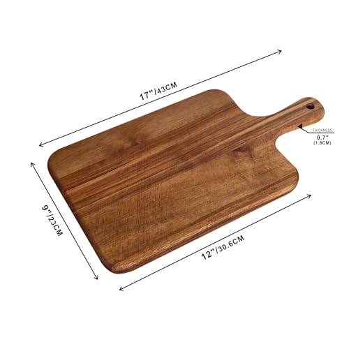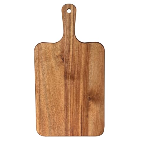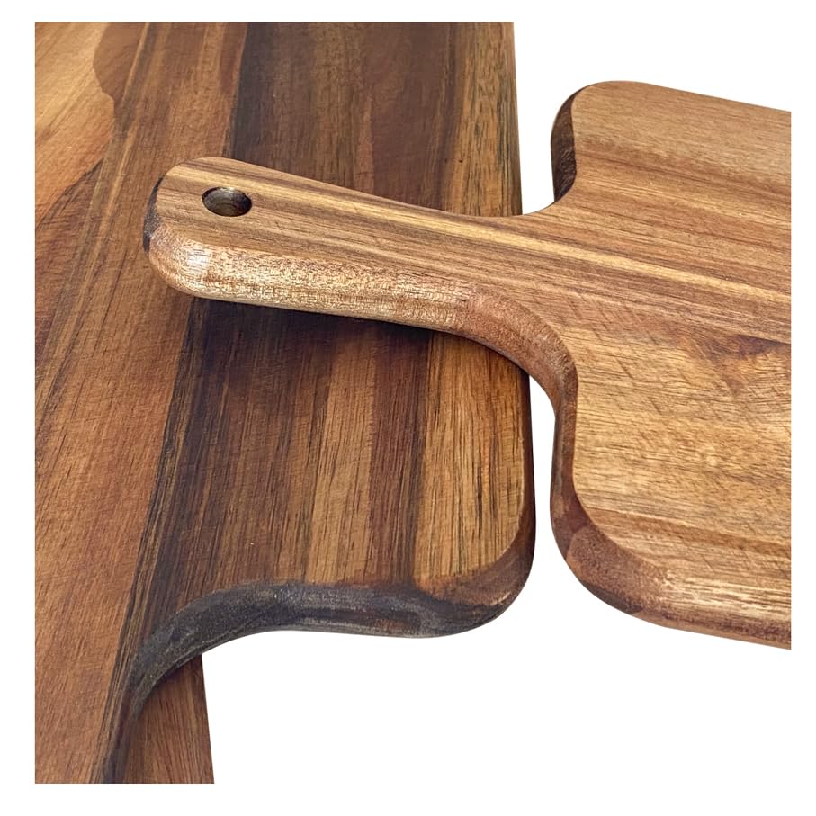- It is made of natural acacia wood which is uniqueness of the wood, it appears unique original color and grain. It's beautiful and will make a great addition to your kitchen. With the handle it's convenient for you to move and this unique handle greatly improves the utilization rate of the area of cutting board.