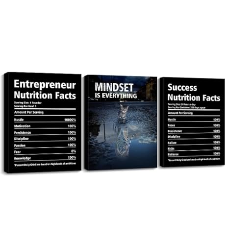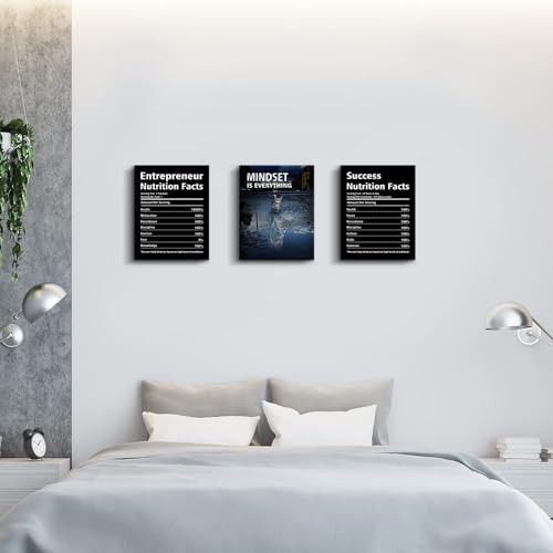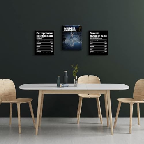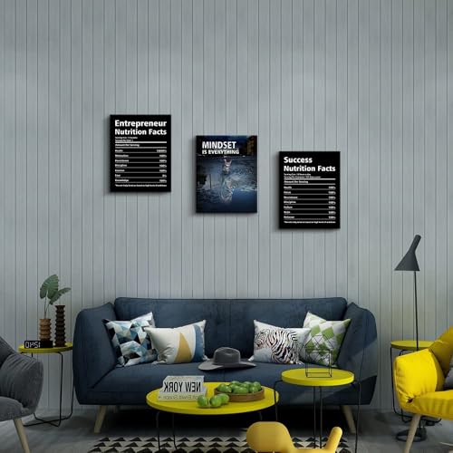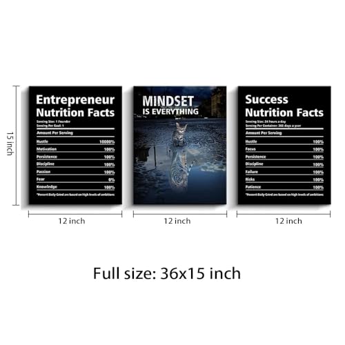 Creoate - لوحة فنية جدارية للمكتب مايندست من كريوات، مجموعة من 3 ملصقات اقتباسات مايندست ملهمة مطبوعة، أعمال فنية بإطار خشبي، ديكور حائط تحفيزي لمكان العمل والجيم
