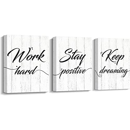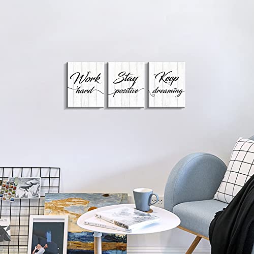 Creoate - CREOATE Office Wall Art Inspirational Quote Work Hard Positive Quotes Wall Decor Set of 3 Motivational Poster Canvas Print Framed 8x10 Inch Artwork for Home Office Workplace Decor