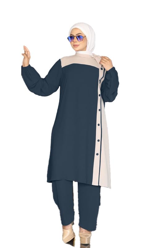 GAMAL SONS FOR ABAYA - Crepe Vizon L XXXL Tunic Pants 60k to 100k For Women, Navy GAMAL SONS FOR ABAYA 00312GS-33272Navy Blue-L (60KG)