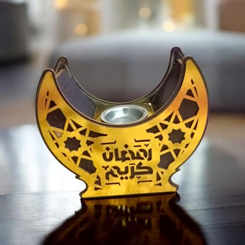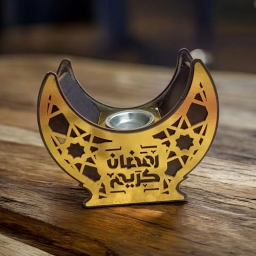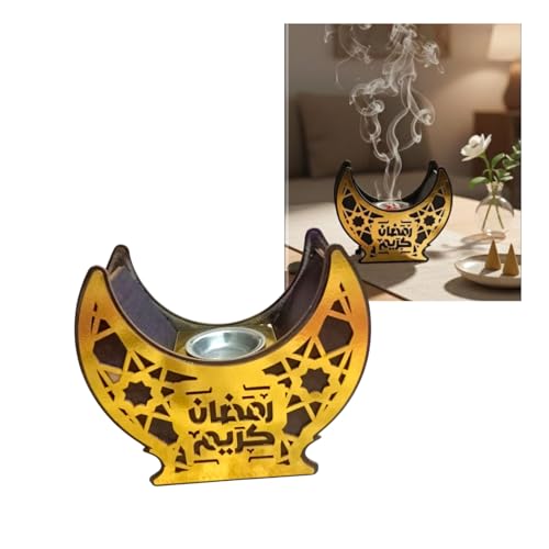 Generic - حامل بخور خشبي بتصميم هلال، ذهبي وأسود، زخارف إسلامية، ديكو