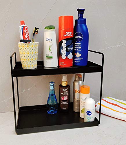 Cri8Hub - منظم حمام ثقيل بطبقتين من سي ار اي 8 هاب لتنظيم ادوات الزينة ومستحضرات التجميل والمكياج والتوابل في المطبخ رف تخزين قائم بلون اسود معدن