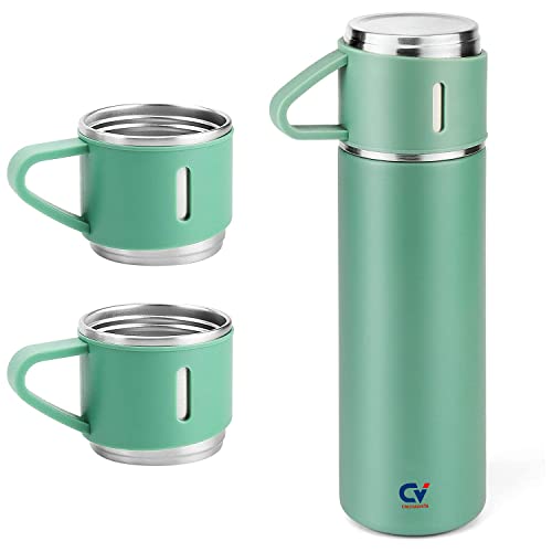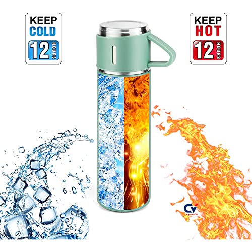 Spaceshoop - CristaVista Stainless Steel Thermo 500ml/16.9oz Vacuum Insulated Bottle with Cup for Coffee Hot drink and Cold drink water flask | Double Wall Keep Beverages Cold & Hot For 12Hrs (Green,Set of 2)