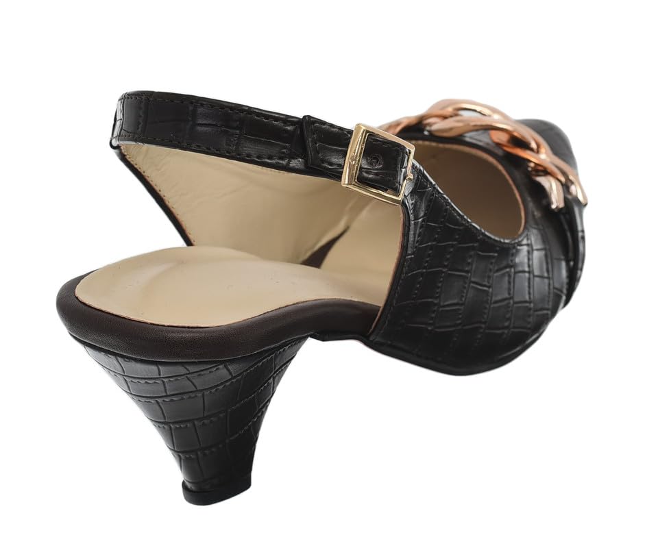 SWAY - Croco print 3 cm kitten heel sling backs with a simple upper chain, 37 EU