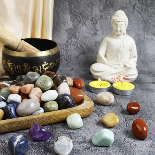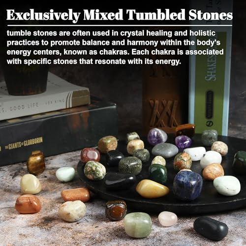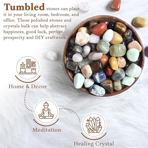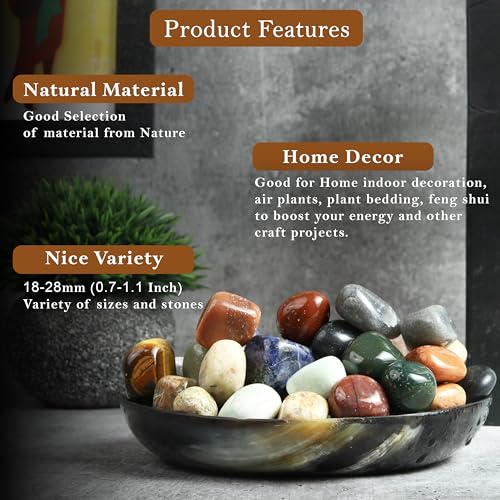 Crocon - مجموعة كروكون المكونة من احجار وكريستالات مختلطة حصريا من الكريستال الطبيعي من اجل ريكي المعالج بالكريستال المصقول، احجار مجففة، توازن شاكرا، حظ، هدية، ديكور منزلي. الحجم: 20 - 25 ملم | 1 باوند