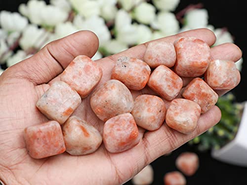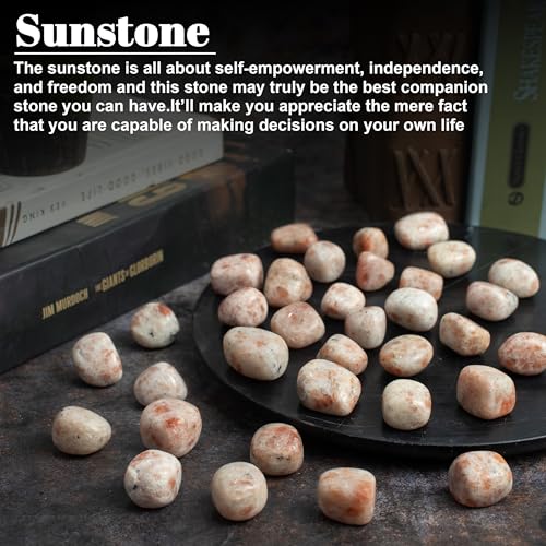 Crocon - Crocon 1lb Sunstone Tumbled Stones and Crystals Bulk Natural Crystal Kit for Reiki Healing Crystal Polished, Tumble Stones, Chakra Balancing, Good Luck, Reiki Gift, Home Decor Size : 20-25 mm