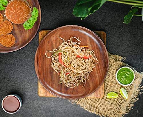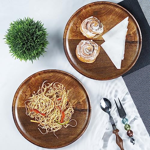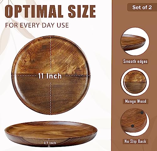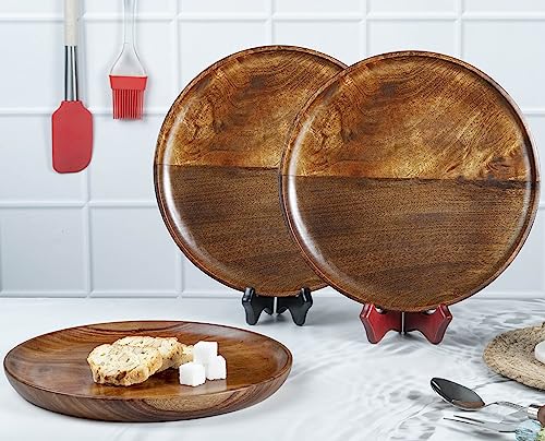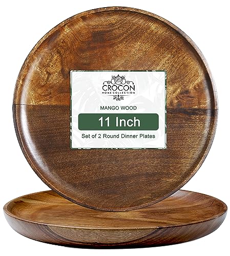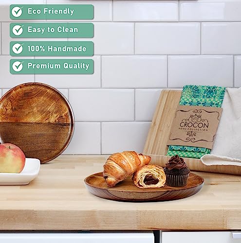 Crocon - اطباق خشبية عشاء من خشب المانجو مجموعة تقديم دائرية قطعتين للجبن والقهوة والشاي والفواكه للحفلات للوجبات الخفيفة والحلويات 11 انش