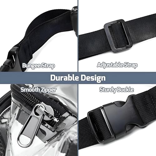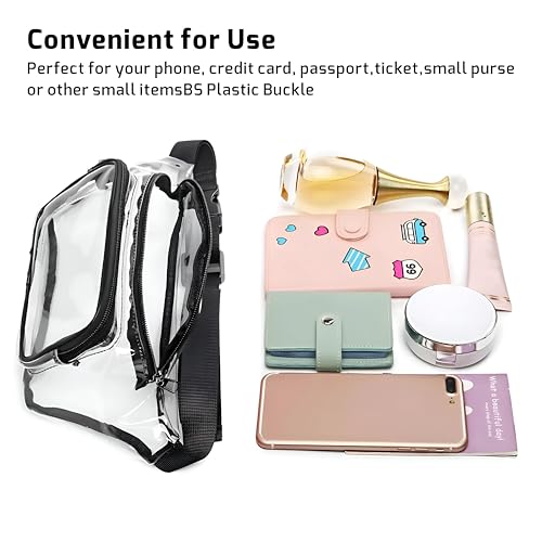 - This product stands out with its versatile design, durable clear material, and thoughtful features that cater to security and convenience. The multiple wearing styles and adjustable strap ensure comfort across different body types, while the secure zipper and sturdy buckle keep belongings safe. Its compact size is perfect for minimalists who want to carry essentials without bulk, yet spacious enough with two compartments to stay organized. Whether for sporting events, festivals, or everyday outi