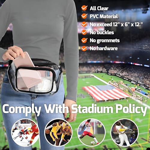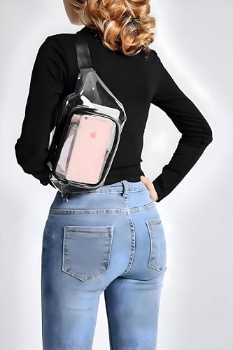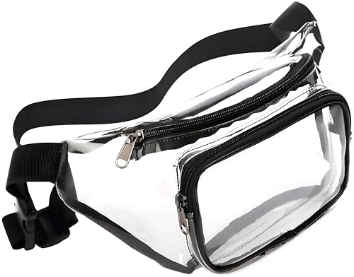 - This transparent waist pack is expertly designed with multiple carrying options, including around the waist, cross-body, or shoulder, offering versatile styling for different occasions such as concerts, sports events, or festivals. The adjustable strap extends from 48 to 119 centimeters, ensuring a secure and comfortable fit for various body sizes. Crafted from durable, clear PVC material, it meets stadium security standards while providing easy visibility and quick access to your essentials. Th