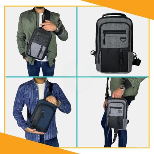 Generic - Crossbody Sling Backpack Grey and Black Multi-Pocket Design with Adjustable Strap, M