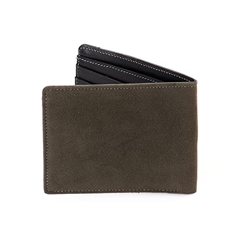 Crossland - محفظة من كروسلاند مصنوعة من الجلد للرجال، بتصميم غير رسمي باللون الزيتوني، مع خاصية حماية RFID وفتحات متعددة للبطاقات