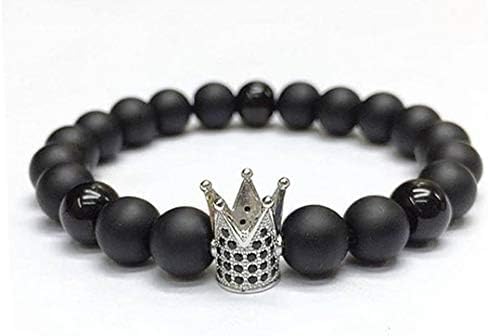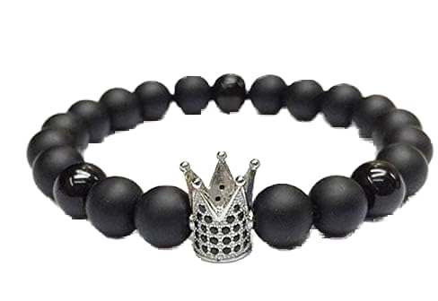 Generic - Crown Charm Matte Black Beaded Bracelet, 8mm Onyx Stone
