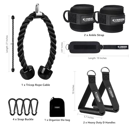 CRRXIN - ملحقات كيبل لصالة الالعاب الرياضية المنزلية، ملحق سحب ال ايه تي، ملحقات الة التمرين، حبل ثلاثي الرؤوس، حزام كاحل لالة الكيبلات ومقابض مزدوجة على شكل حرف D
