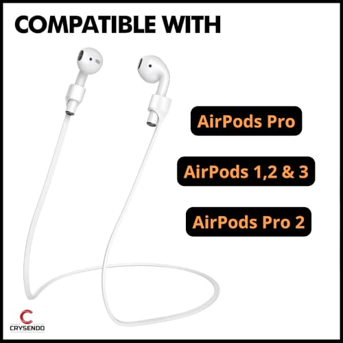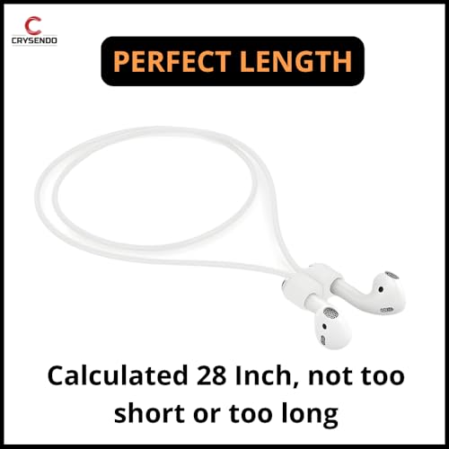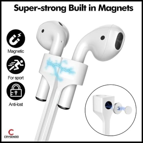 CRYSENDO - شريط مغناطيس مضاد للضياع مصنوع من السيليكون من كريسيندو لسماعات ايربودز برو | وصلة كابل سلكية للرقبة رياضية (70 سم، لون أبيض مغناطيسي)