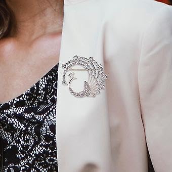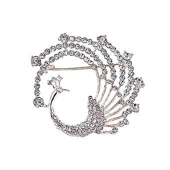Generic - Crystal Brogue Pin Silver Plated for Events and Parties (Peacock)