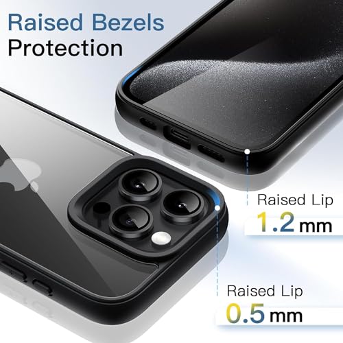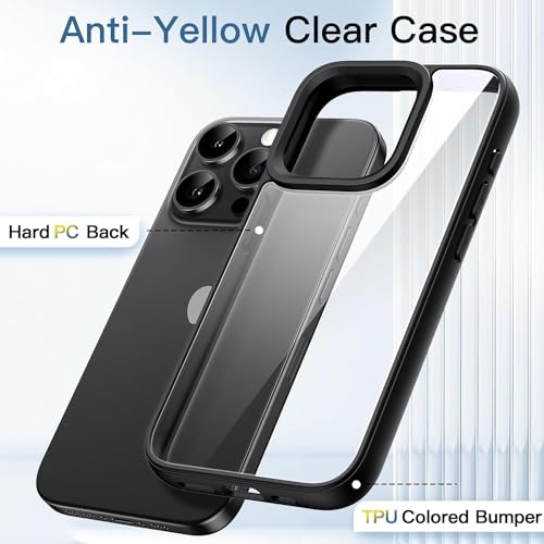 Generic - جراب شفاف كريستالي مضاد للصدمات لأيفون 15 برو ماكس - - 14 - 13 - 12 لا يصفر حماية من السقوط الدرجة العسكرية. أسود iPhone Pro Max البولي يوريثين الحراري