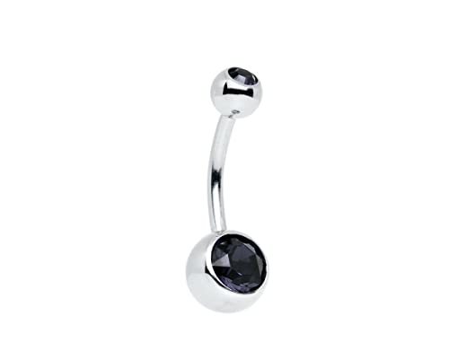 BIJOUX BEAUTIQUE - مجوهرات ثقب سرة البطن من التيتانيوم مرصعة بحجر كريم كريستالي، لون فضي