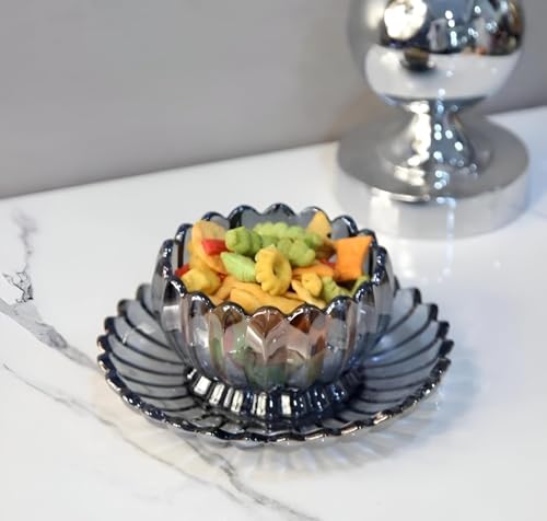 Generic - Crystal Glass Set - Elegant 12-piece floral-decorated crystal bowl and serving platter set, perfect for luxury dining and special occasions. (White)