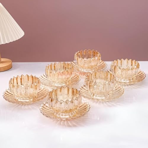 - يتميز طقم الزجاج الكريستالي المكون من 12 قطعة أنيق مع زخارف زهور معقدة مستوحاة من اللوتس، مما يخلق سطحًا يعكس الضوء بجمال ويُضفي لمسة فاخرة خالدة على أي طاولة طعام أو مناسبة استضافة.
