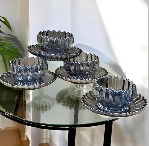 - The set includes six ornate serving dishes and six matching bowls, each designed with delicate shell-like edges and detailed floral patterns, making them ideal for presenting an array of foods from fruit salads and nuts to desserts and traditional Middle Eastern treats like qamar al-din.