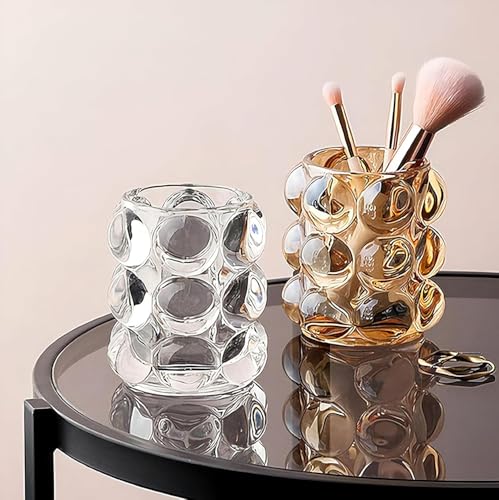 Generic - برطمان تخزين من الزجاج الكريستالي بتصميم فقاعات شفافة وحامل فرش المكياج والاقلام والشموع، برطمان سميك ومتين للديكور للحمام والمكتب وديكور المنزل (عسل)