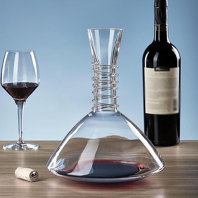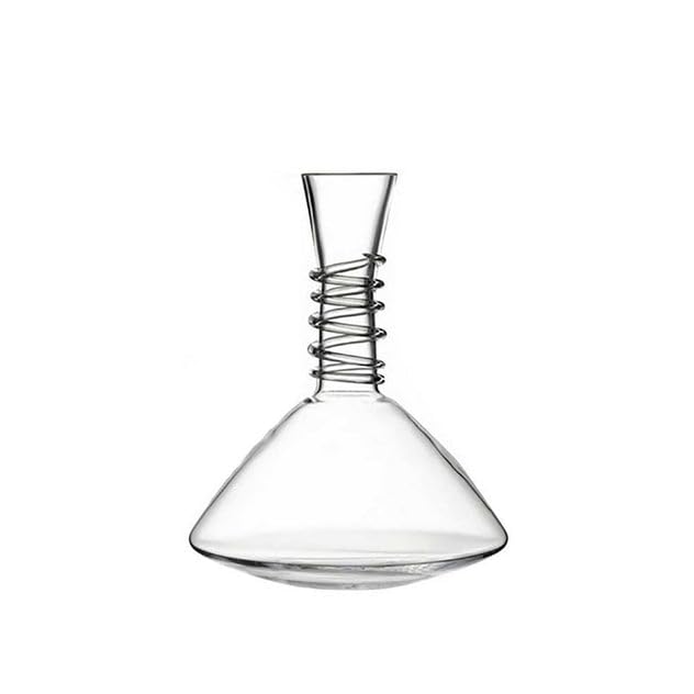 Generic - Crystal Glass Wine Decanter with Spiral Wire Neck Detail, Clear, Conical Shape, for Red Wine Aeration 1.25 L