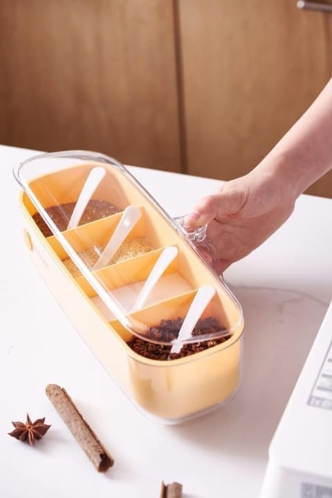 Generic - صندوق توابل من كريستال هوم مع غطاء، طقم طاولة طعام اكريليك للتوابل، صندوق تخزين للملح، وعاء مع غطاء وملعقة (موديل 2)
