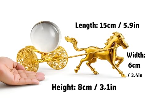 - The piece incorporates a crystal‑clear glass sphere securely seated atop the chariot, serving both as a captivating decorative element and a functional feng shui object; the crystal ball catches and refracts ambient light, producing dazzling mirror‑like reflections that multiply the visual impact and bring a sense of radiant energy to the room.