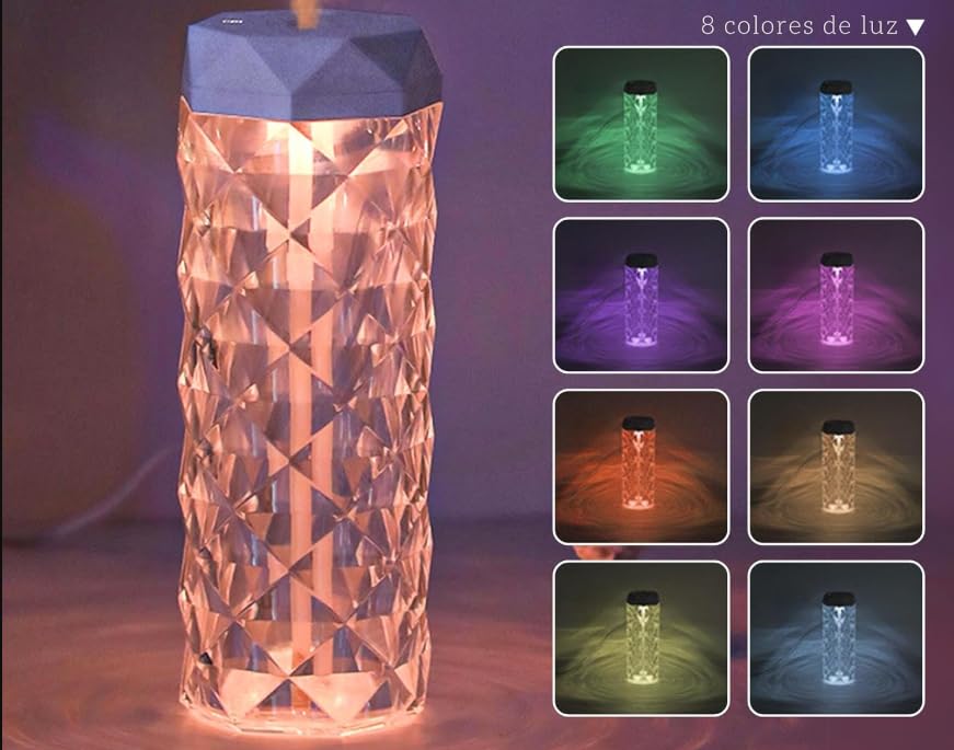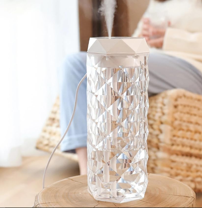 Generic - Crystal Pattern USB Humidifier, 300ml Capacity, White, Desktop Ultrasonic Cool Mist Diffuser with LED Light