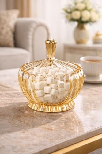 Generic - Crystal Sugar Bowl with Lid – Decorative Glass Sugar Container for Sugar Cubes & Sweeteners – Elegant Tabletop Sugar Bowl for Tea & Coffee