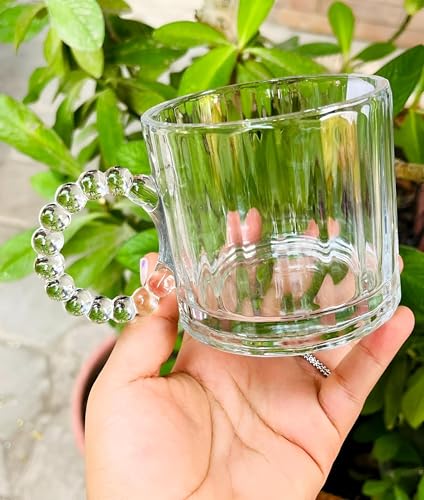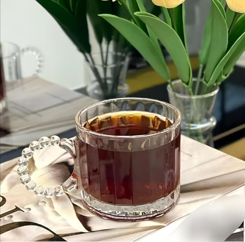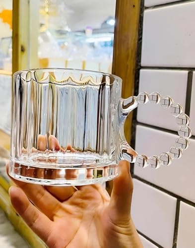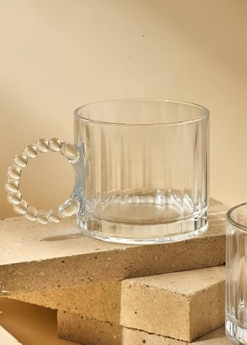 Generic - مج شاي كريستال - أكواب زجاج شفافة بمقابض فقاعات فريدة من نوعها، مثالية لتقديم المشروبات الساخنة والباردة بأسلوب عصري، 6 قطع