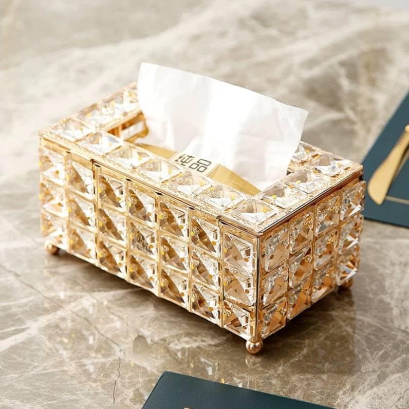 - ELEGANT DESIGN: Luxurious crystal tissue box holder features sparkling rhinestone embellishments in a sophisticated gold finish that adds glamour and elegance to any room décor