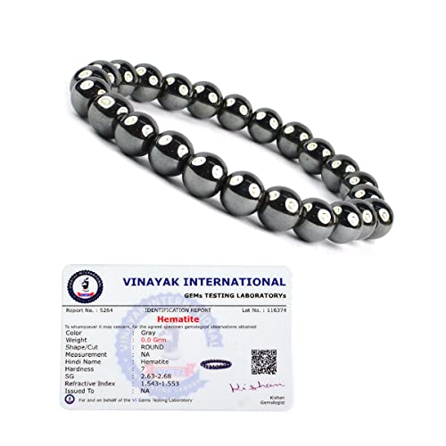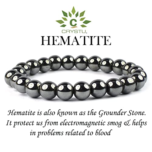 generic - Crystu Certified Hematite Bracelet Reiki Healing Crystal Stone 8 mm Bracelet, Charged By Reiki Grandm & Vastu Expert, Standard, Natural Crystal Stones, Hematite