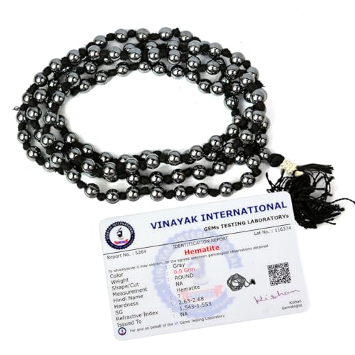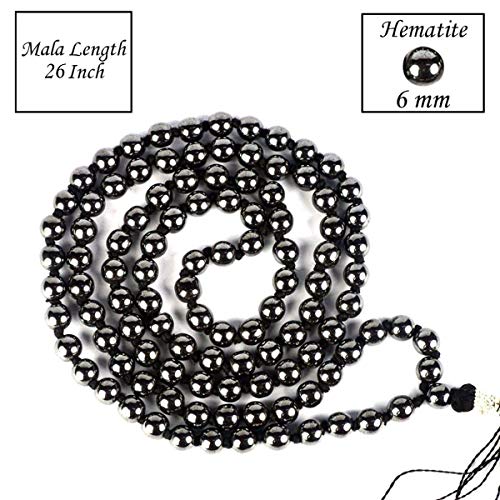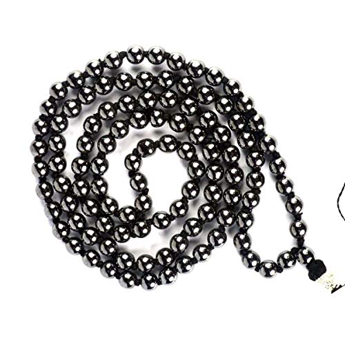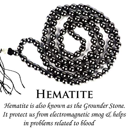 Crystu - Natural Semi Precious Crystal Stone 6 mm 108 Beads Jap Mala / Necklace for Reiki Healing Stones, 6 mm, Natural Crystal Stone, Hematite