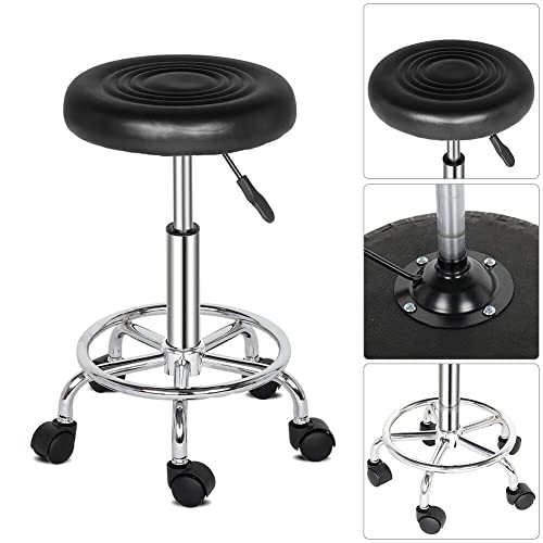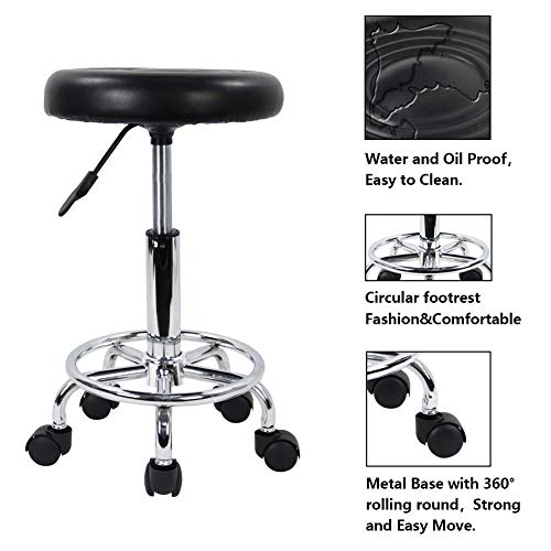 - Comfortable:The salon stool equipped with a modern turbo round cushioned seat, PU leather waterproof, easy to clean and maintain.