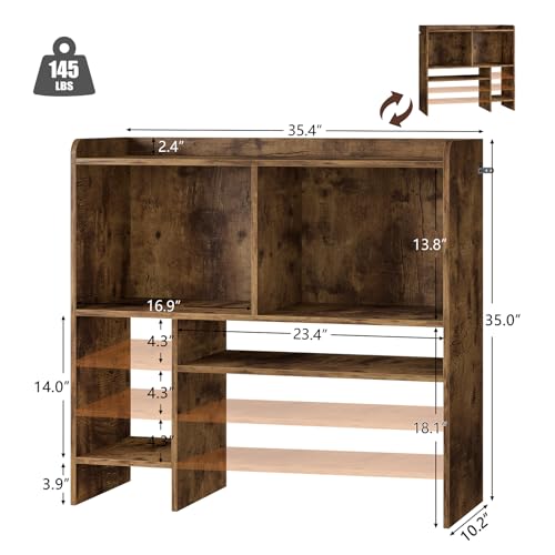 - [متين وقوي] هل ما زلت تعاني من فوضى مكتبك. لا تقلق، فلدينا هذا المنتج من أجلك. رف الكتب المكتبي للمكتب المنزلي مصنوع من خشب معالج عالي الجودة، ويمكن لمنظم التخزين المكتبي تحمل وزن يصل إلى 66 كجم والاستخدام لفترة طويلة. بالإضافة إلى ذلك، نولي اهتمامًا كبيرًا باستقرار منظم المكتب، بما في ذلك أجهزة منع الانقلاب لضمان ثبات رف الكتب بأكمله. كما يضمن الحاجز المضاد للسقوط أمان الأغراض، بينما تساعد الزوايا المستديرة وأرجل الحماية المغطاة بالكامل المضادة للانزلاق في تحقيق تصميم آمن ومتین.