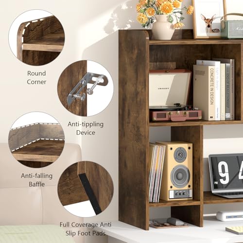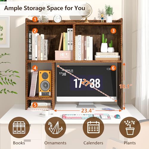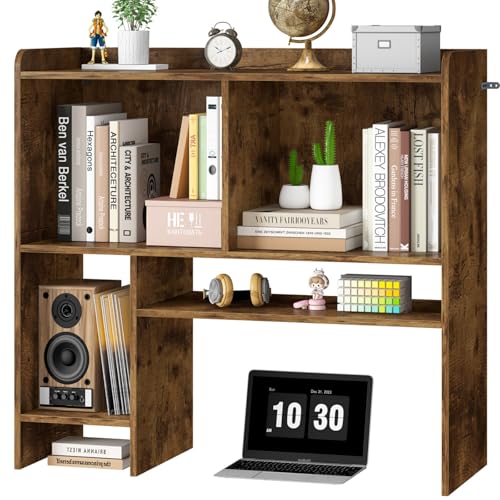 CSZZD - رف منظم كتب مكتبي طويل كوحدة تخزين خشب على المكتب مزودة بـ5 رفوف و3 طبقات للعرض للمكتب المنزلي أو السكن الجامعي من CSZZD، لون بني