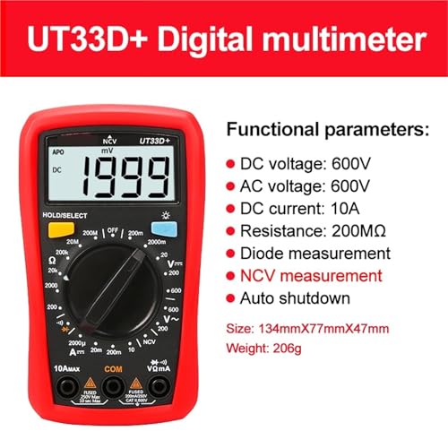CTDOFUM - Digital Multimeter UT33D+ UT33C+ UT33B+ UT33A+ Palm Size Multimeters DC AC Voltmeter Resistance Tester(UT33D Plus)