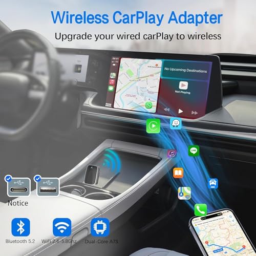 - About this item Wireless CarPlay Adapter: Upgrade Your Wired CarPlay to Wireless with Ease! This CarPlay Wireless adapter supports effortless navigation, music playback, phone calls, and messaging through Siri, touchscreen, buttons, or knobs. Say goodbye to tangled cables and enjoy a cleaner, more comfortable, and safer driving experience.