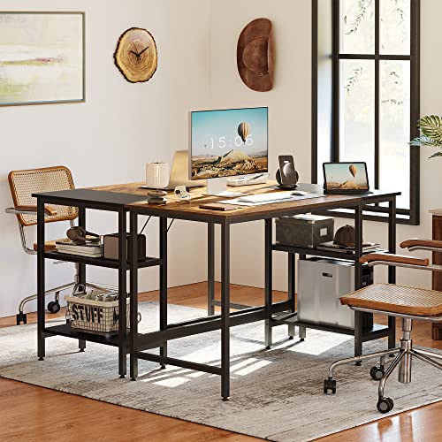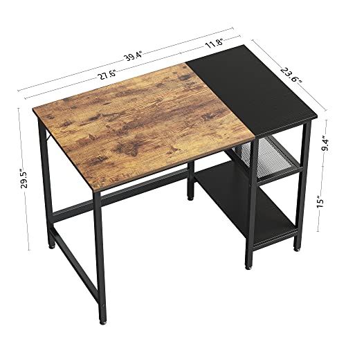 CubiCubi - CubiCubi 100 cm Modern Simple Computer Desk with Storage Shelves, Brown and Black