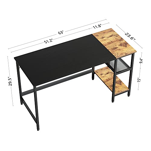 CubiCubi - CubiCubi Computer Home Office Desk, 63 Inch Small Desk Study Writing Table with Storage Shelves, Modern Simple PC Desk with Splice Board, Black