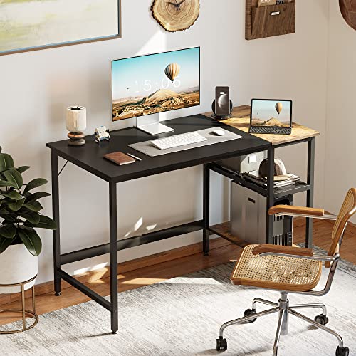 - Modern Confident Style: CubiCubi home computer desk delivers a peaceful user experience to you wherever at office or home. This desk unifies rigid metal with tasteful, rustic brown and black wooden boards. It is as fashionable as functional that the splice board and 2-tier open shelves design. Made the right choice for your home