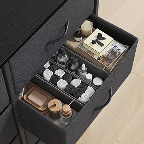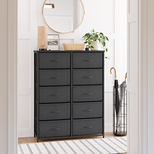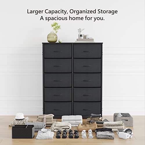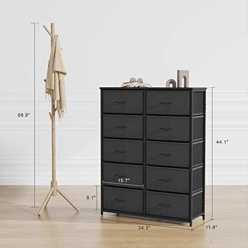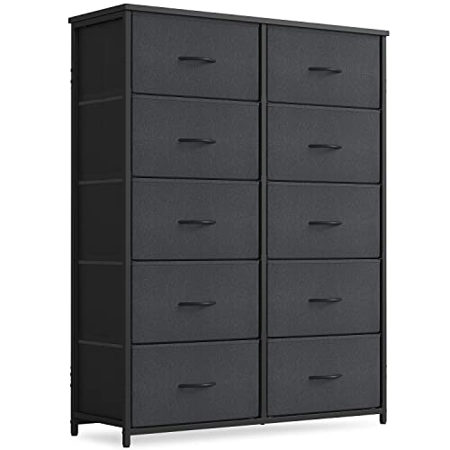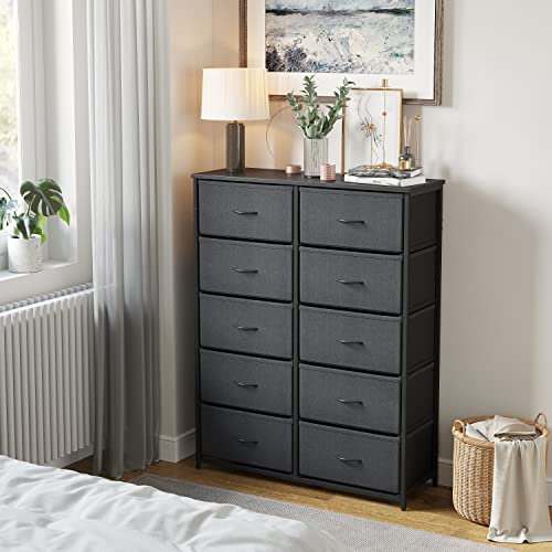 CubiCubi - CubiCubi Dresser for Bedroom, 10 Drawer Storage Organizer Tall Wide Dresser for Bedroom Hallway, Sturdy Steel Frame Wood Top, Black Grey