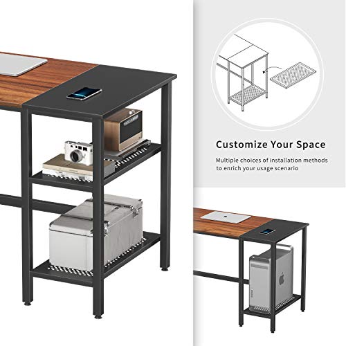 • Multifunctional shelf: Two-tier open shelves for under-desk storage